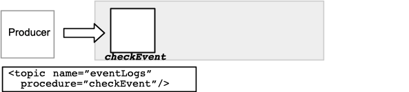 FROM CLASS mycompany.myprocs.checkEvent;<topics> <topic name="eventLogs" procedure="checkEvent"/> </topics>