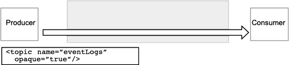 <topic name="sysmsgs" opaque="true"/>Opaque topics allow you to use a single set of brokers for all your topics even if you only need to analyze and process certain data feeds. Because there is no interpretation, you cannot specify a stored procedure, a stream, or a format for the topic. However, there are a few properties specific to opaque topics you can use to control how the data are handled.