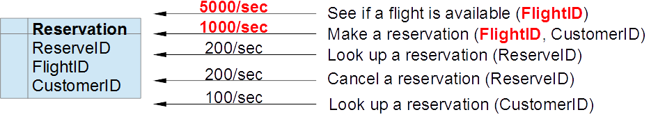 Looking at the workload for the reservation system in the previous section, the important transactions to focus on are: