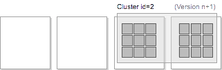 | Phase #3 | Create a new cluster on the stopped nodes, using the new VoltDB software version. Be sure to configure the cluster with a new cluster ID, XDCR enabled, and listing the original cluster as the DR connection source. You can also start the new cluster using the --missing argument so although it starts with only half the nodes, it expects the full complement of nodes for full k-safety. In the example, the start command would specify --count=2 and --missing=2. After loading the schema and procedures from the original cluster, XDCR will synchronize the two clusters. ![]() |